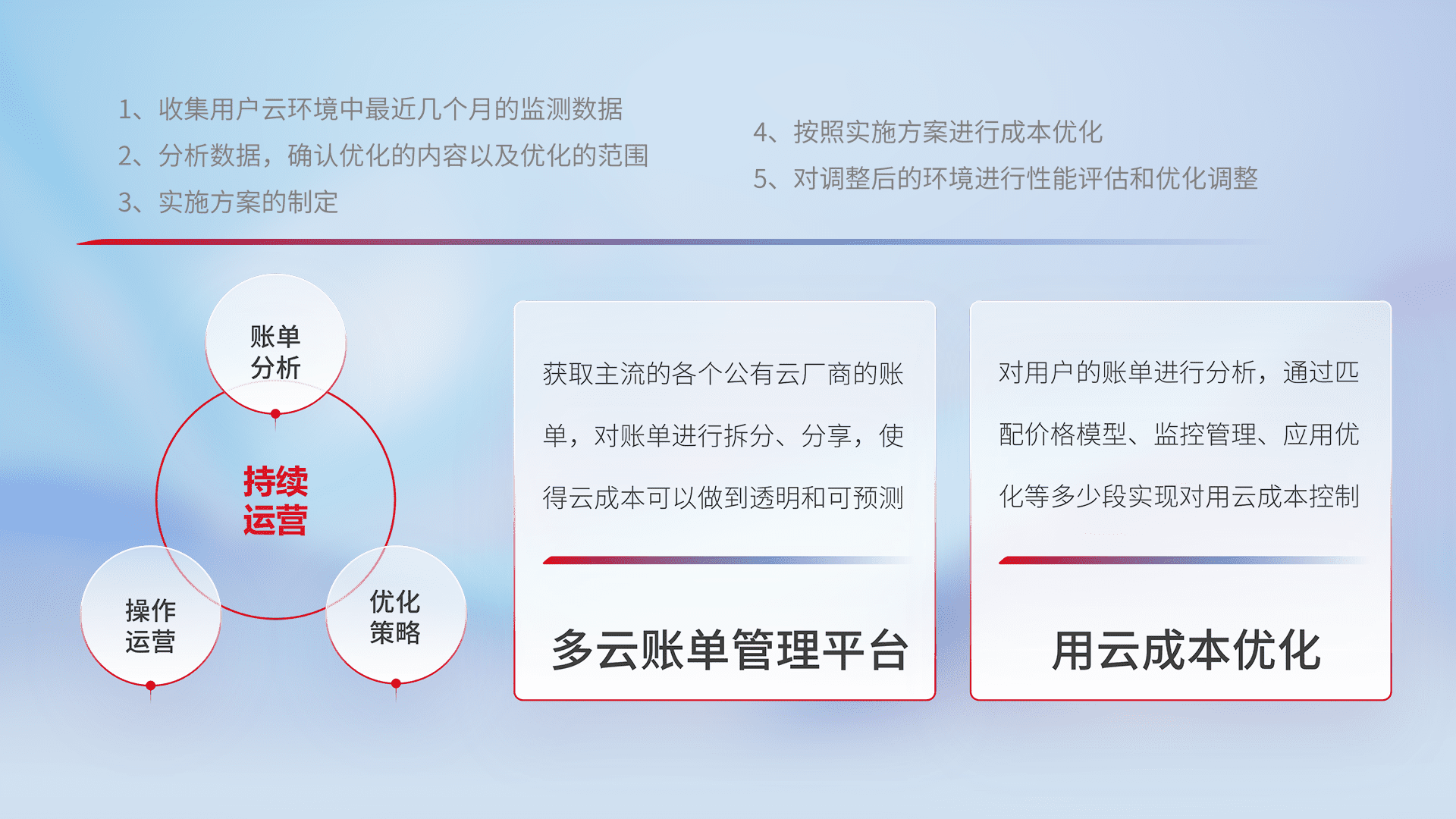 监控业务系统资源开销,,,,对资源的消耗精确计量,,,实现费用的透明化管理,,不断提升资源使用率,,,调整资源购买方式,,,,降低资源费用成本,,用云成本可预测、、用云费用可优化,,,,云资源配额有据可依。。
